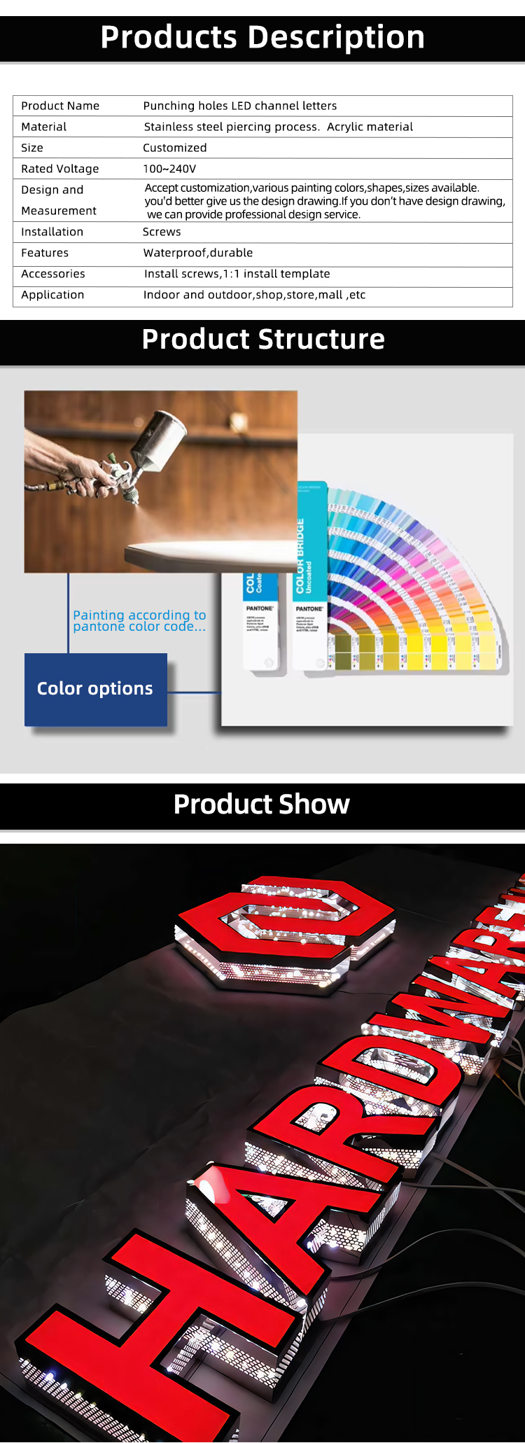 PRODUCTS > bulk custom punching holes led channel letters
