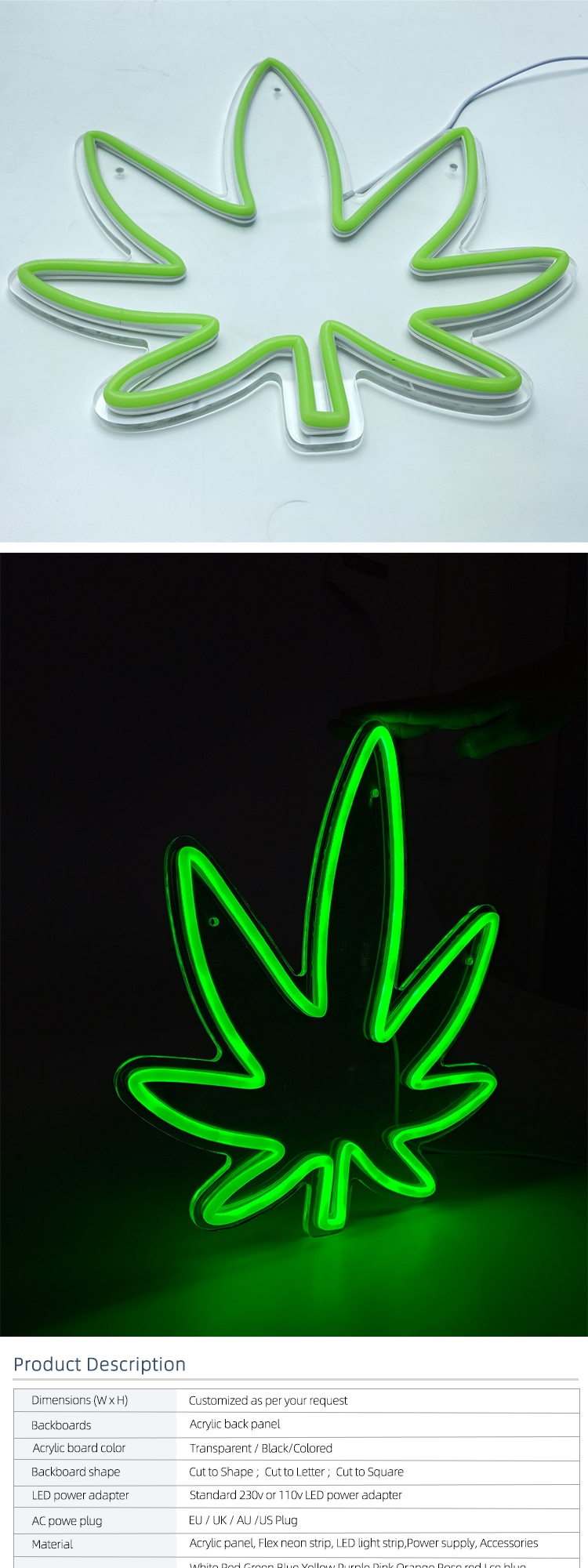Leaf Neon Sign Acrylic Illuminated Signage